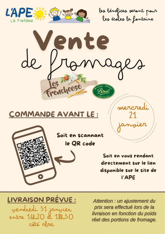 Notre vente de fromages commence dès maintenant pour soutenir les projets de l’école, et nous comptons sur vous !